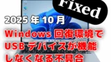 2025年10月の月例Windows Updateをインストールすると、Windows回復環境でマウスとキーボードが動作しなくなる場合があります。