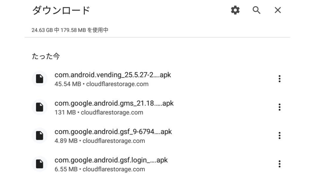 冒頭に書いた順番でAPKをインストールしていきます。