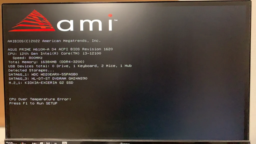 CPU Over Temperature Errorが表示されてPCが起動しない