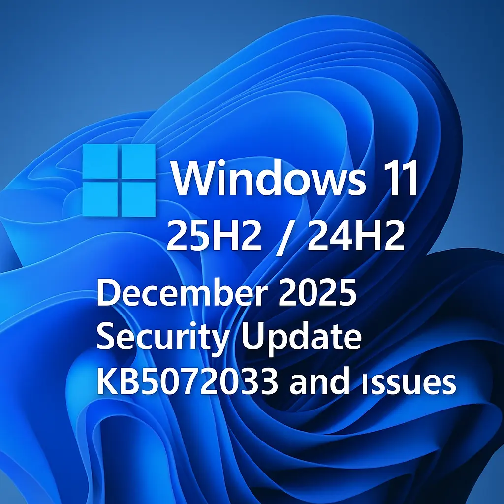 2025年12月9日(現地時間)にリリースされたWindows11 バージョン25H2および24H2用セキュリティ更新プログラム「KB5072033」の基本情報および不具合情報です。 -