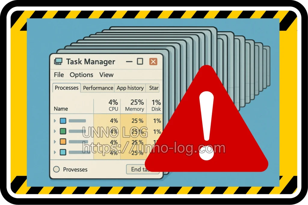 【対処法あり】Windows11 KB5067036にタスクマネージャーの不具合。閉じても完全に終了せず増え続ける